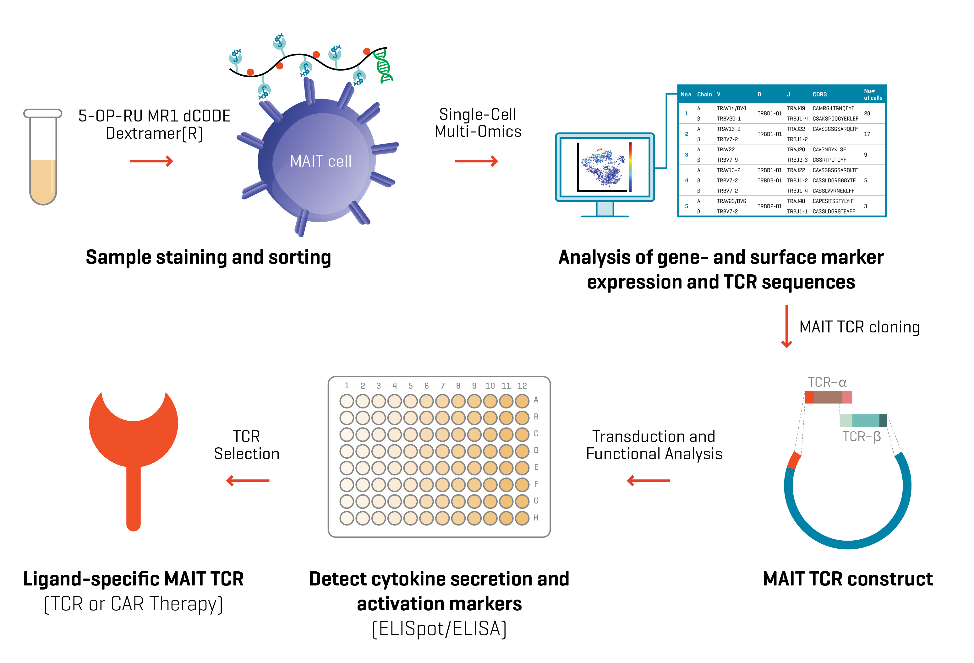 Select ligand-specific TCRs for MAIT cell-based therapy using MR1 Dextramer® or MR1 dCODE Dextramer® reagents: