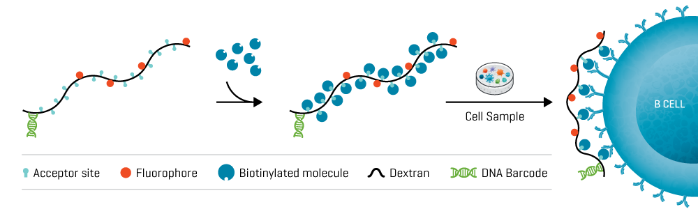 • Assess the specificities of 2000 murine lymph node derived B cells using a next-generation sequencing and custom-produced Protein-X dCODE® Klickmer in just one workflow