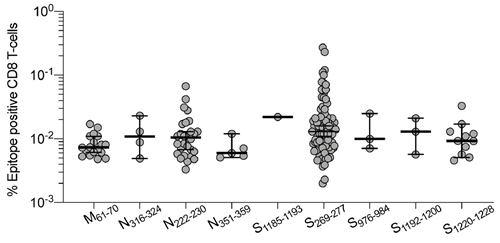 • 90% of the investigated individuals had a detectable SARS-CoV-2-specific CD8+ T-cell response