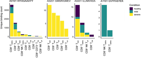 - In patients with severe COVID-19, single-cell analysis with dCODE Dextramer® (10x) reagents revealed hyperactivation, T-cell exhaustion, and lack of long-lived memory T-cell characteristics